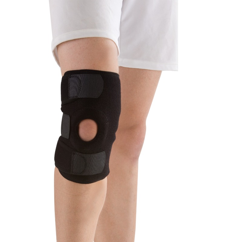 • Fournit une compression et un soutien au genou faible ou blessé